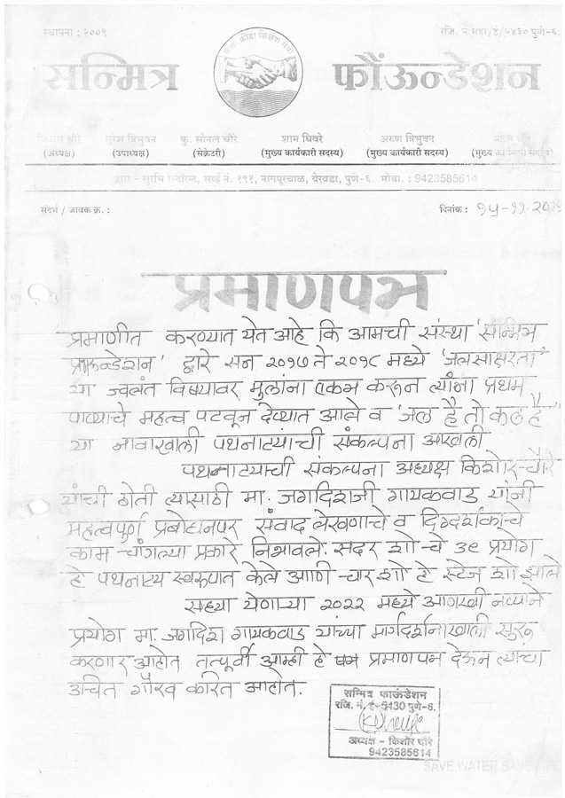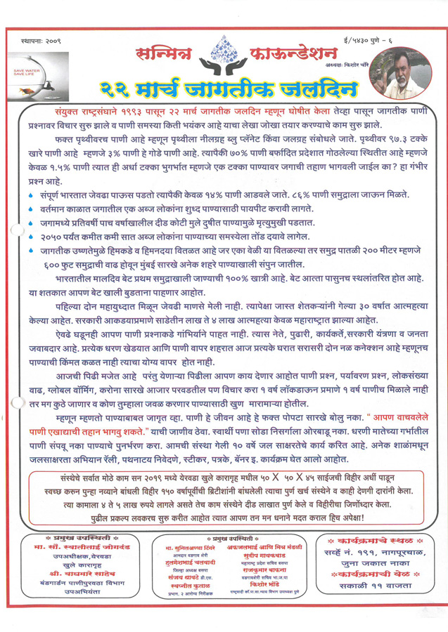 At Sanmitra Foundation, our central aim is to create awareness in the Water Literacy among the citizens of India.